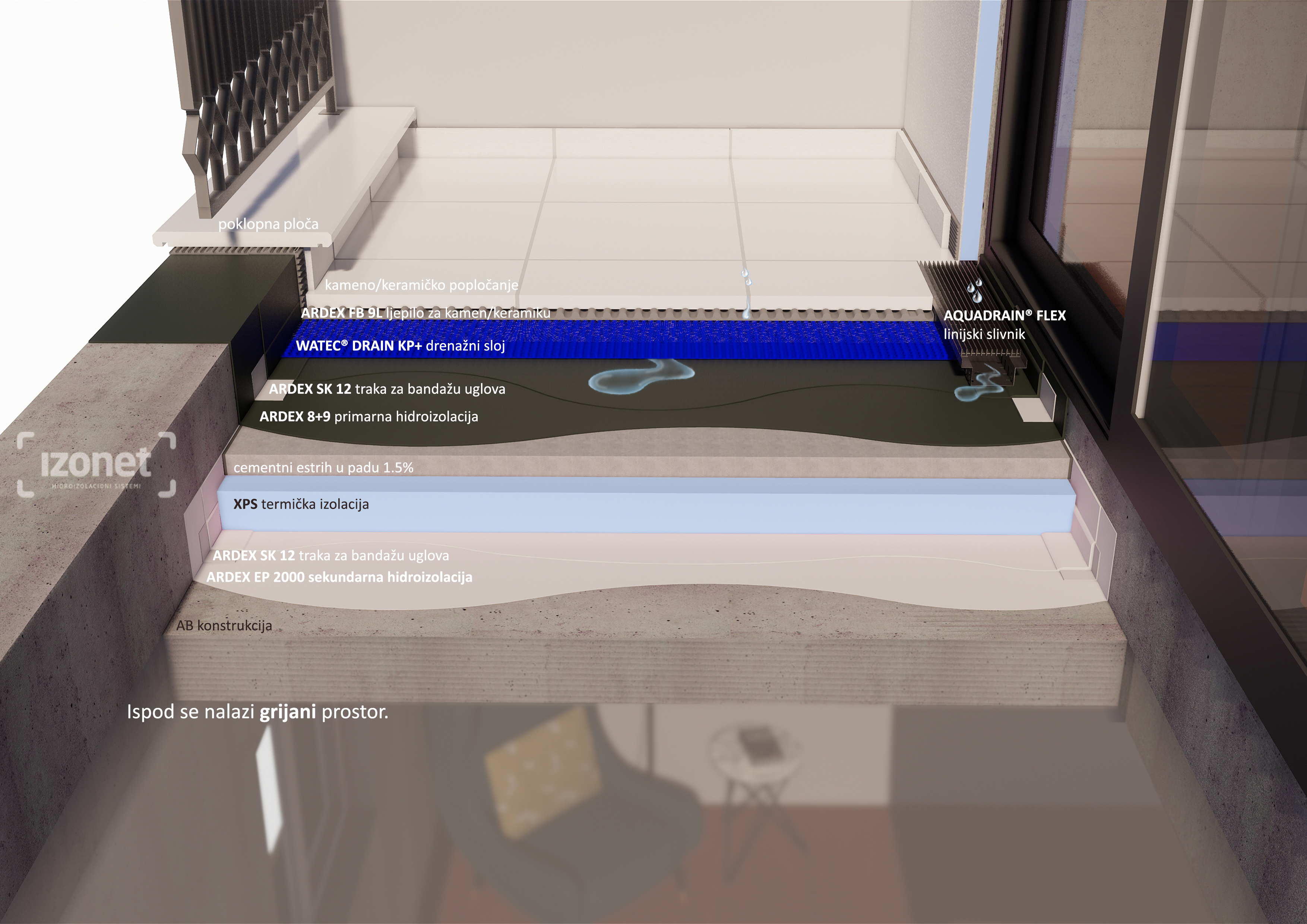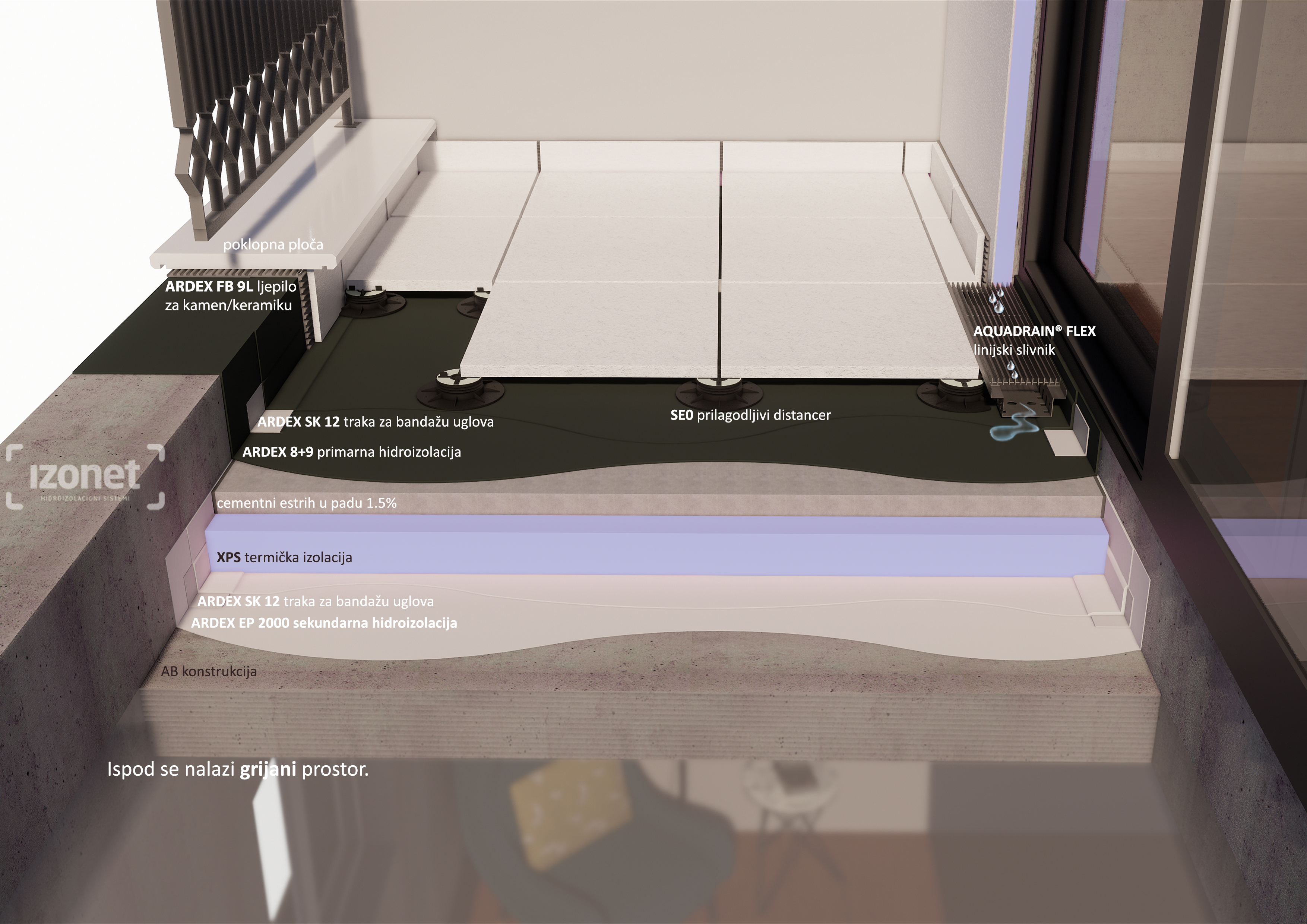 • termička izolacija, samo u slučaju da se ispod terase nalazi zatvoreni ili grijani prostor