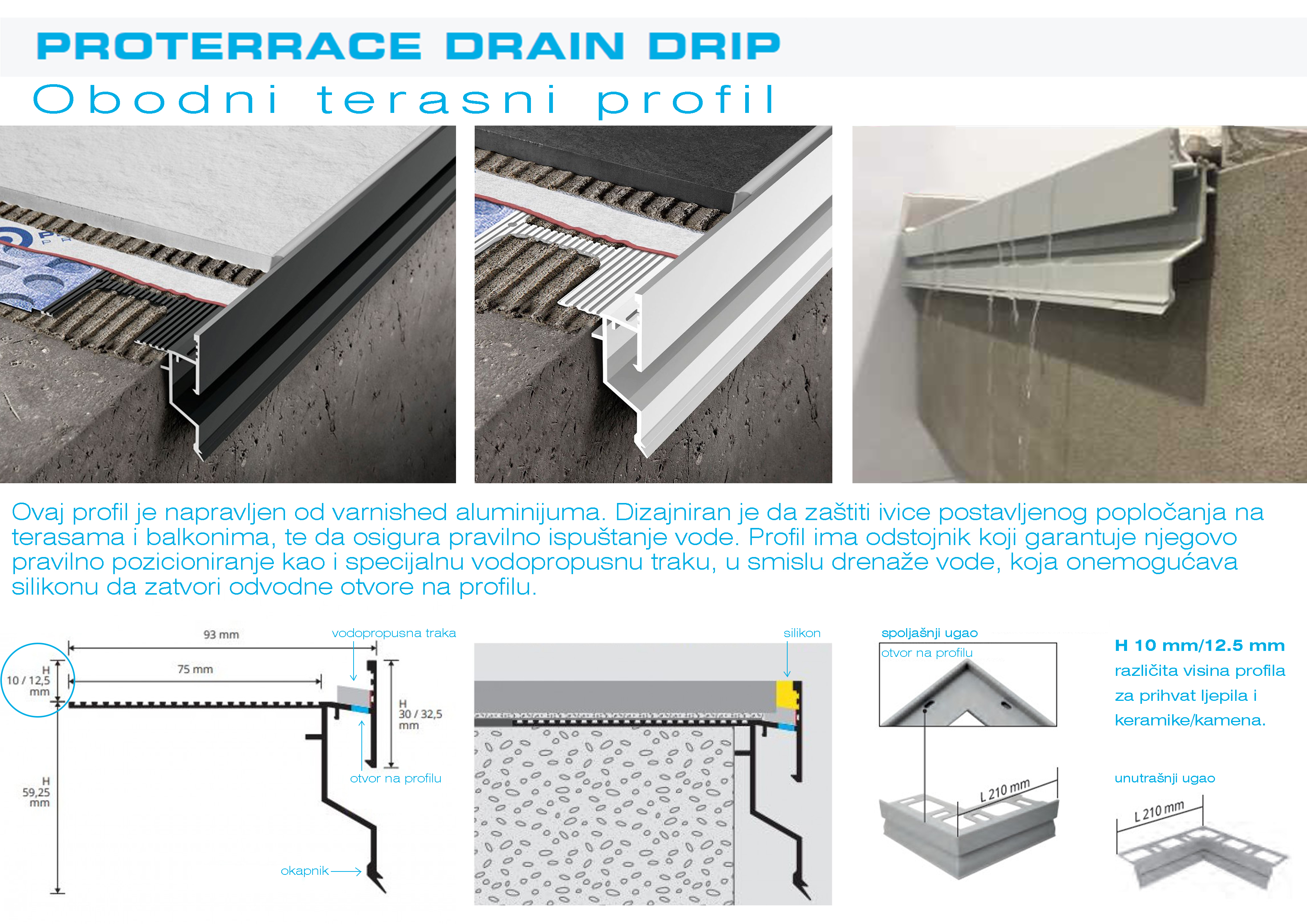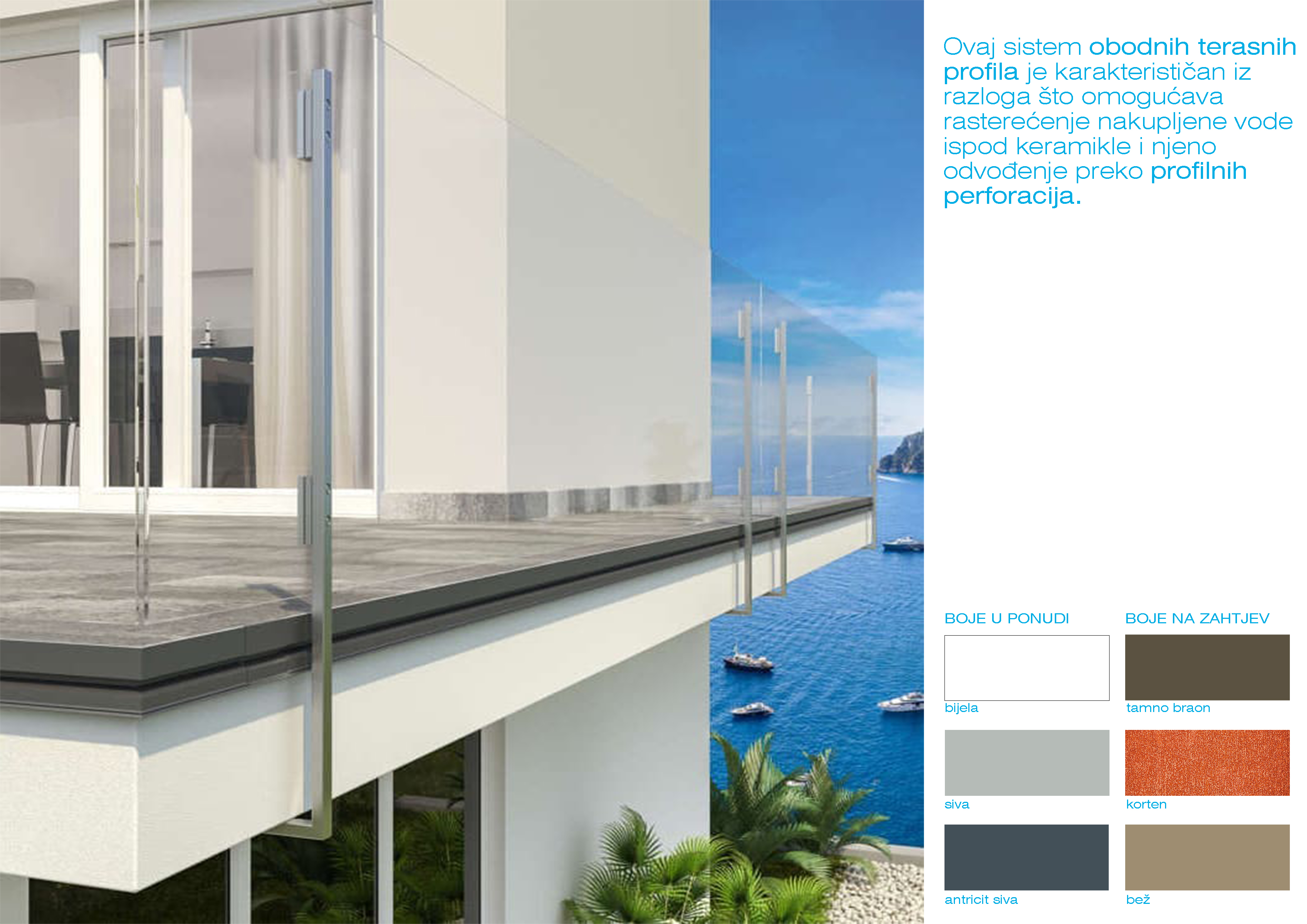 Predstavićemo Vam njihov novi dizajn - obodni terasni profil koji je napravljen da spriječava pojavu ružnih mrlja na obodnim dijelovima terase prouzrokovanih zadržavanjem vode ispod popločanja i slivanjem vode niz ploču.