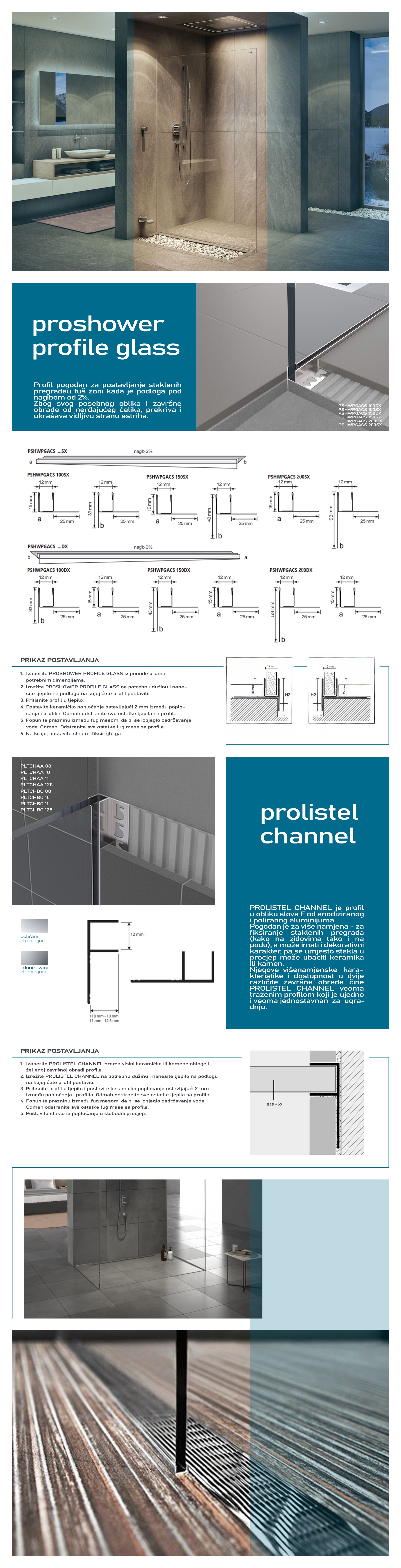Profili za pričvršćivanje staklenih pregrada u tuš zonama - PROSHOWER PROFILE GLASS i PROLISTEAL CHANNEL od sada dostupni u Izonetu.