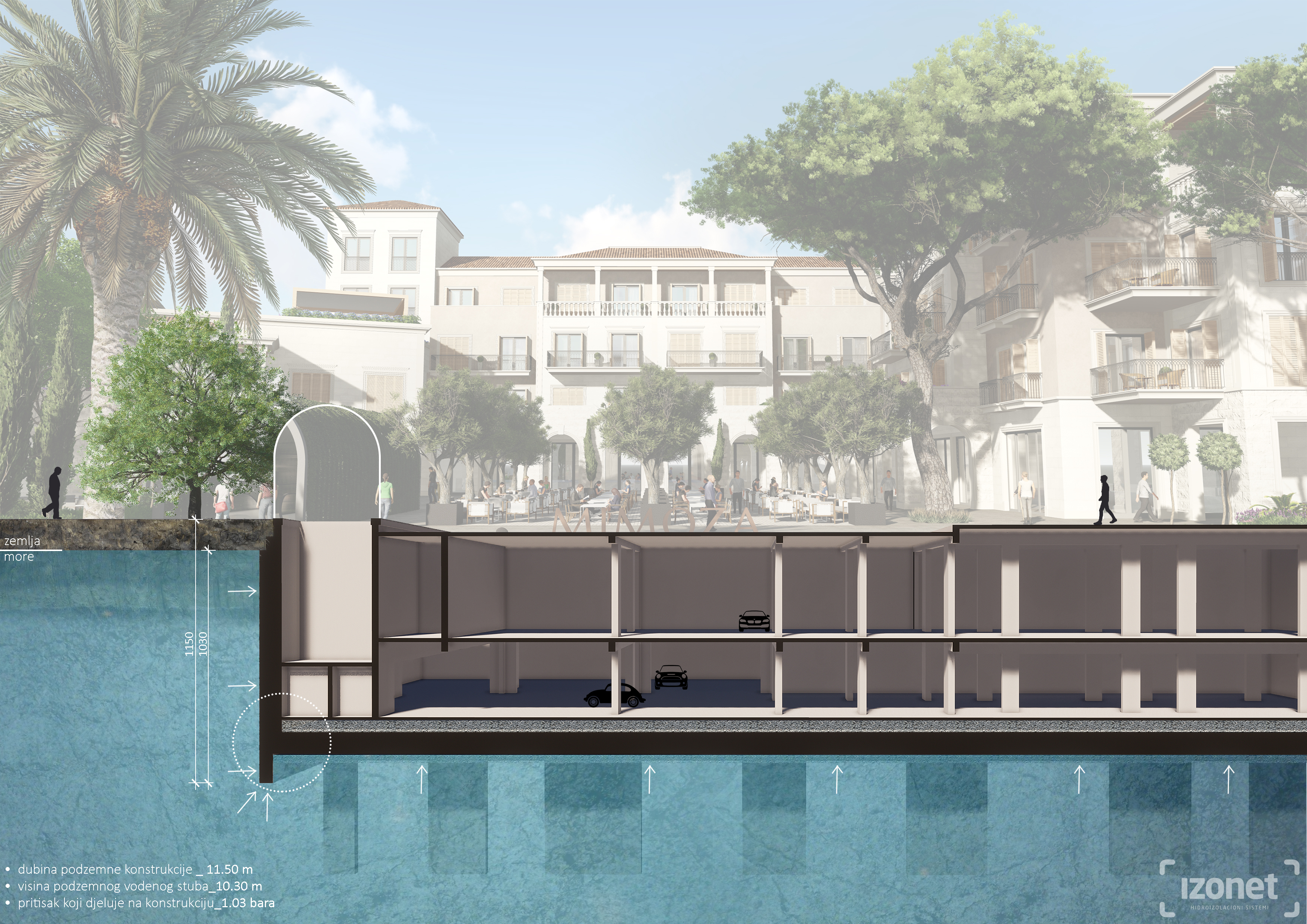 Izraziti pritisak morske vode po cijeloj dubini podzemnog dijela objekta, horizontalno i vertikalno, sve to u kombinaciji sa „Top down“ metodom gradnje (odozgo prema dolje), opravdava kategoriju jednog od građevinski i hidroizolaterski najzahtijevnijih i najodgovornijih projekata ne samo sa aspekta naše kompanije već i na nivou građevinskog sektora Crne Gore.