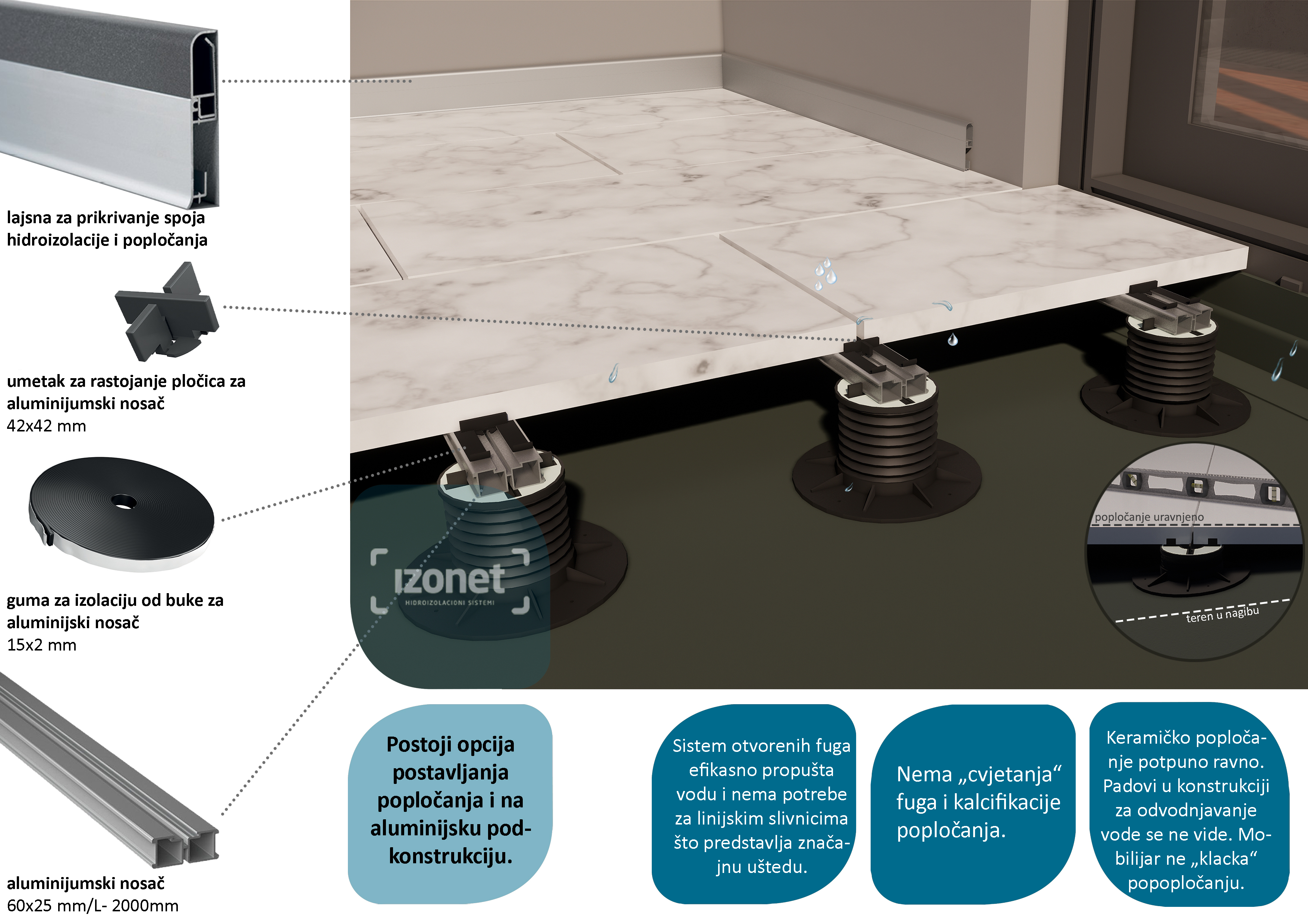 Da biste saznali koje vrste hidroizolacija se postavljaju na balkonima i terasama ispod popločanja na distancerima, kliknete ovdje. U download zoni možete pronaći materijal za sistem popločanja na distancerima u pdf formatu.